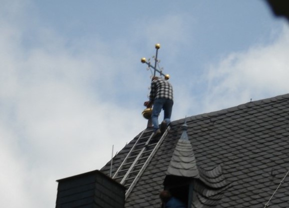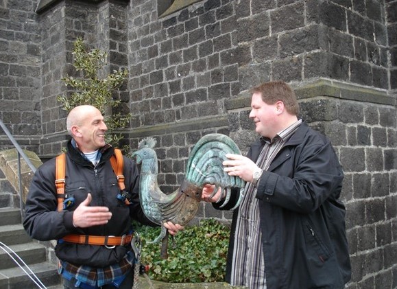 Am 29.2.2008 wurde der von Wetter und Alter gezeichnete Kirchenhahn vom Turm genommen.