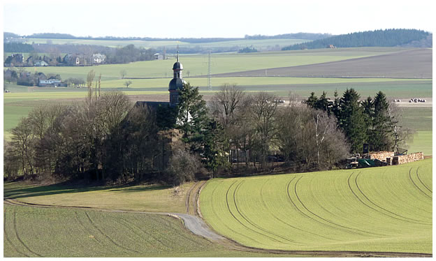 „1906 erfolgte die Trennung von Hofgut und Kirche durch Schenkung der Kirche an die Kath. Pfarrgemeinde St. Johannes Ap. Thür“.